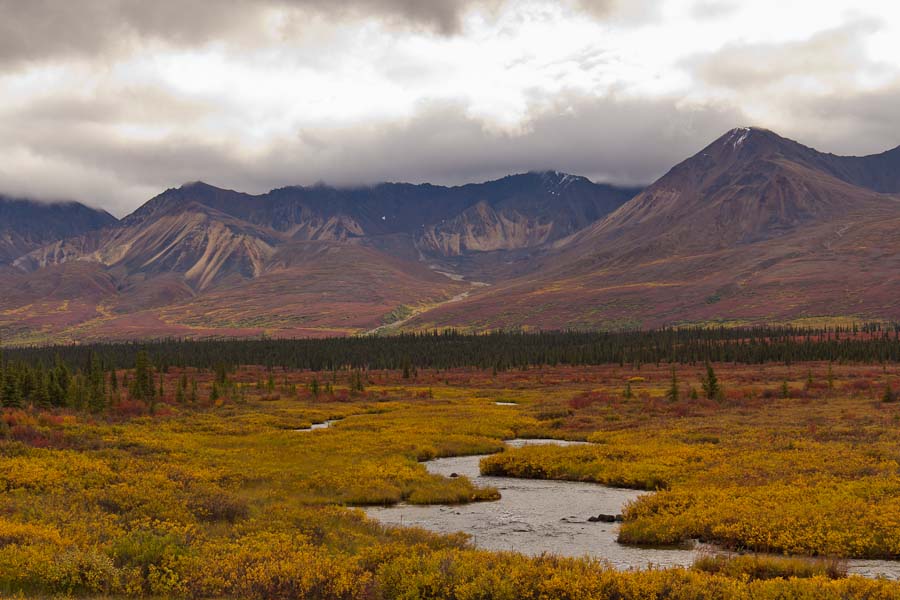 Return now to the present time. We are traveling up the Parks Highway towards the Denali Highway and Denali National Park. We had traveled this same road when Kay and Larry were with us only a few weeks ago. Then we had traveled the road in reverse, coming across the Denali Highway and down to Anchorage. At that time, the vegetation was lush and green. Now, fall colors have arrived in all its glory.