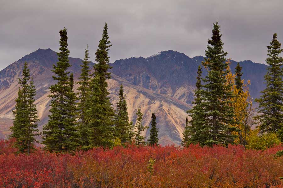 But before we talk about the fall colors, let’s talk about vegetables in Alaska. Firstly, they are very expensive. Imagine, they only have at most 2 months to grow them. Secondly, we discovered yet another myth about Alaska. The pictures of vegetables one sees in the tourist magazine showing 50 pound cabbages are not typical. In fact, we suspect these monsters are hot house grown. How do we know? Well, we took a side trip in the Mat-Su Valley to visit a pick-your-own-vegetable farm. This farm was an obvious local (mostly from Anchorage) favorite. It was quite large with a variety of vegetables. The vegetables were nice, but there were no monsters here! As a side note, the water in this valley comes from the snow and glacier melt. (You will hear more about farms using snow melt when we travel through the Okanogan Valley in British Columbia and Washington State.)