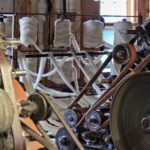 Fine “modern” machinery at work! Here they are “carding” wool, getting it ready for the spinning loom.